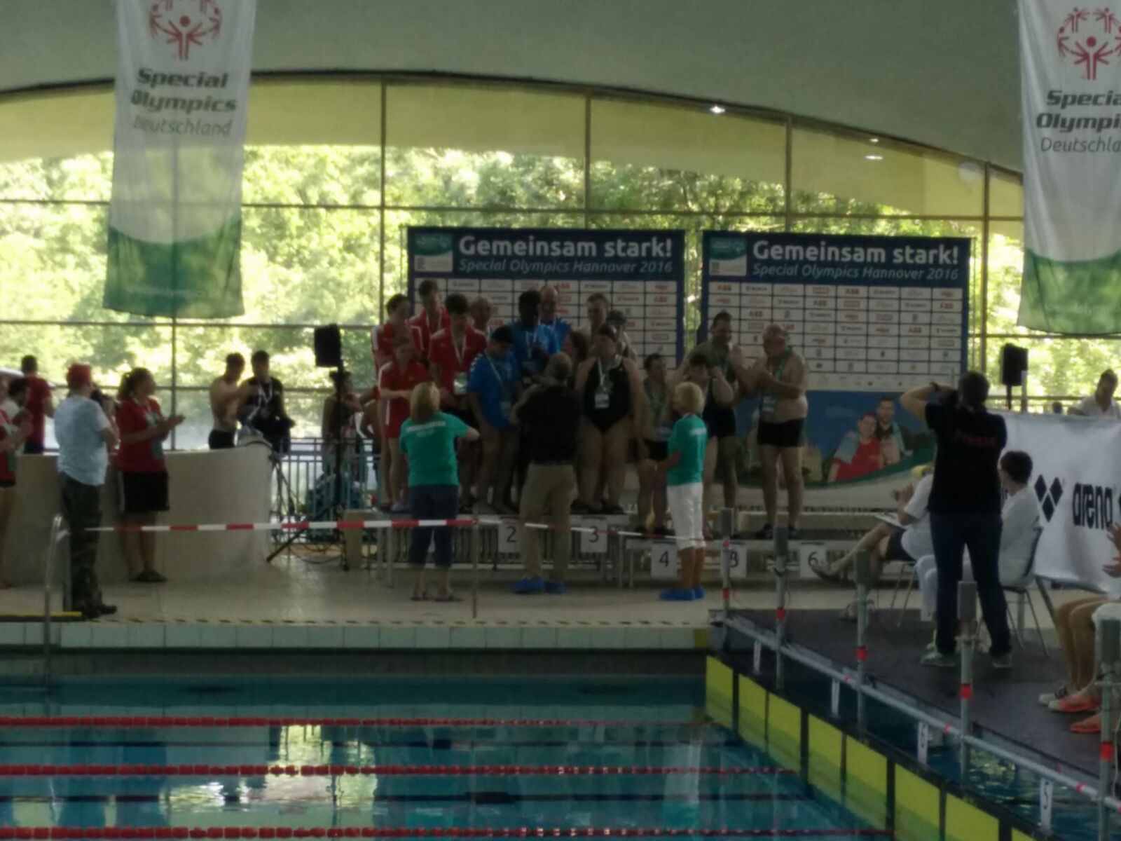 Erst vor zwei Jahren wurde die Schwimmmannschaft von Frau Remer und Herrn Lübben gegründet und ist seitdem kontinuierlich gewachsen. Um an den nationalen Spielen der Special Olympics teilnehmen zu können, mussten sich die Schüler und Schülerinnen über die Landesspiele, die letztes Jahr stattfanden, qualifizieren. Fünf der 12 Schüler und Schülerinnen taten dies. Es waren Sumru A., Tayyip F., Davis G., Justin L. und Hussein Ch.